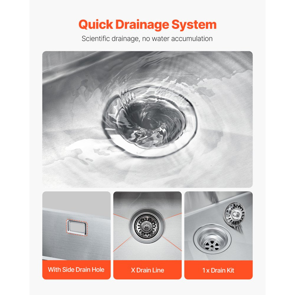 De keukenspoelbak is gemaakt van hoogwaardig roestvrij staal 304, dat kras- en vlekbestendig is, terwijl het dikwandige staal zorgt voor een lange levensduur.