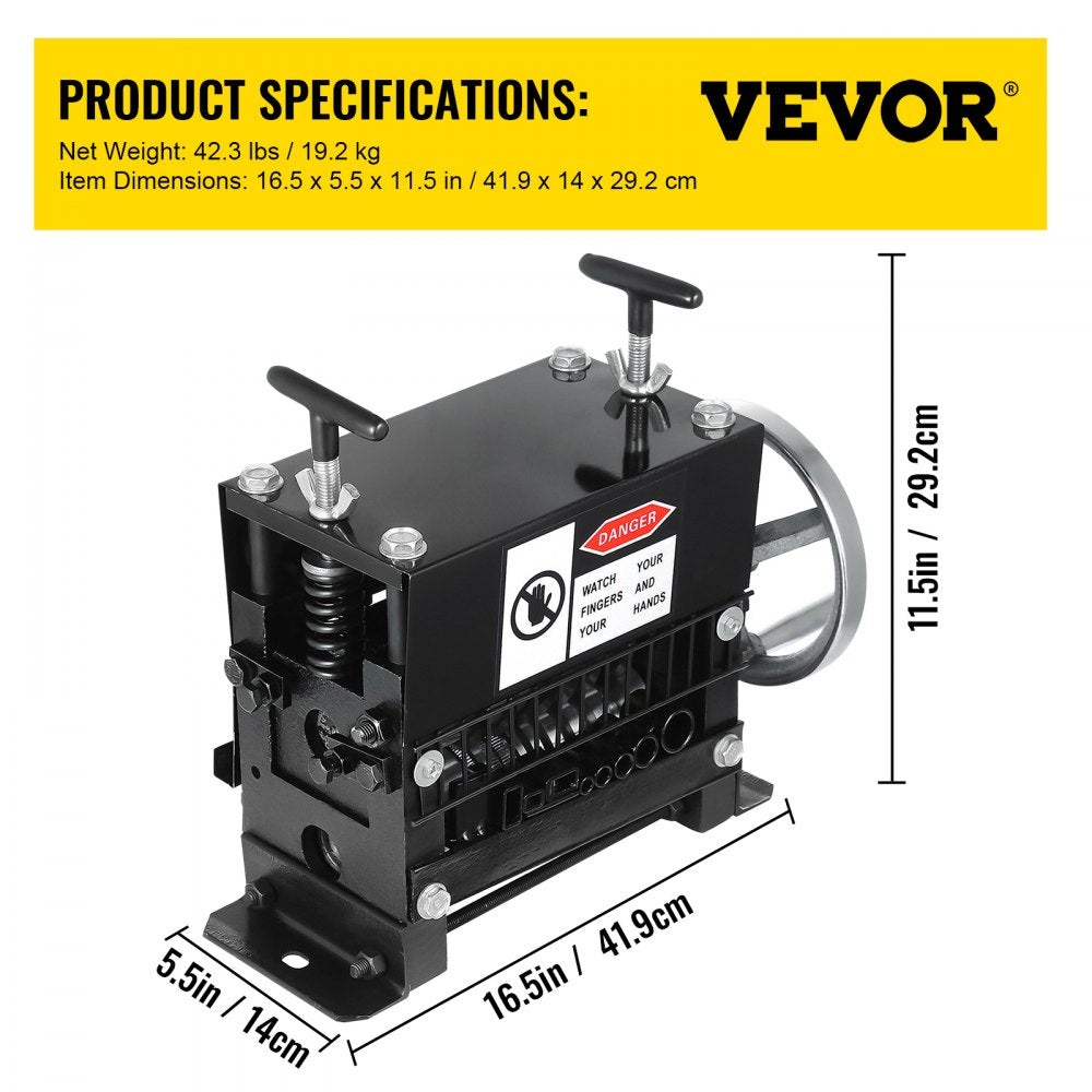 Onze koopwaar omvat 3 platte sleuven en 5 ronde kanalen voor het strippen van koperafvaldraad en voor verschillende draadformaten.