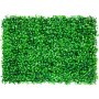 Groene VEVOR kunstbuxuspanelen met varens en grasaccessoires.