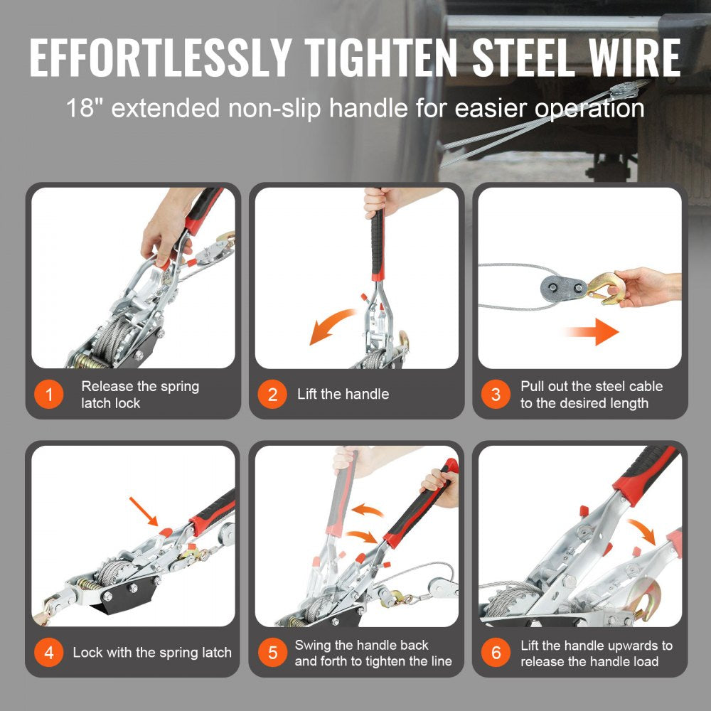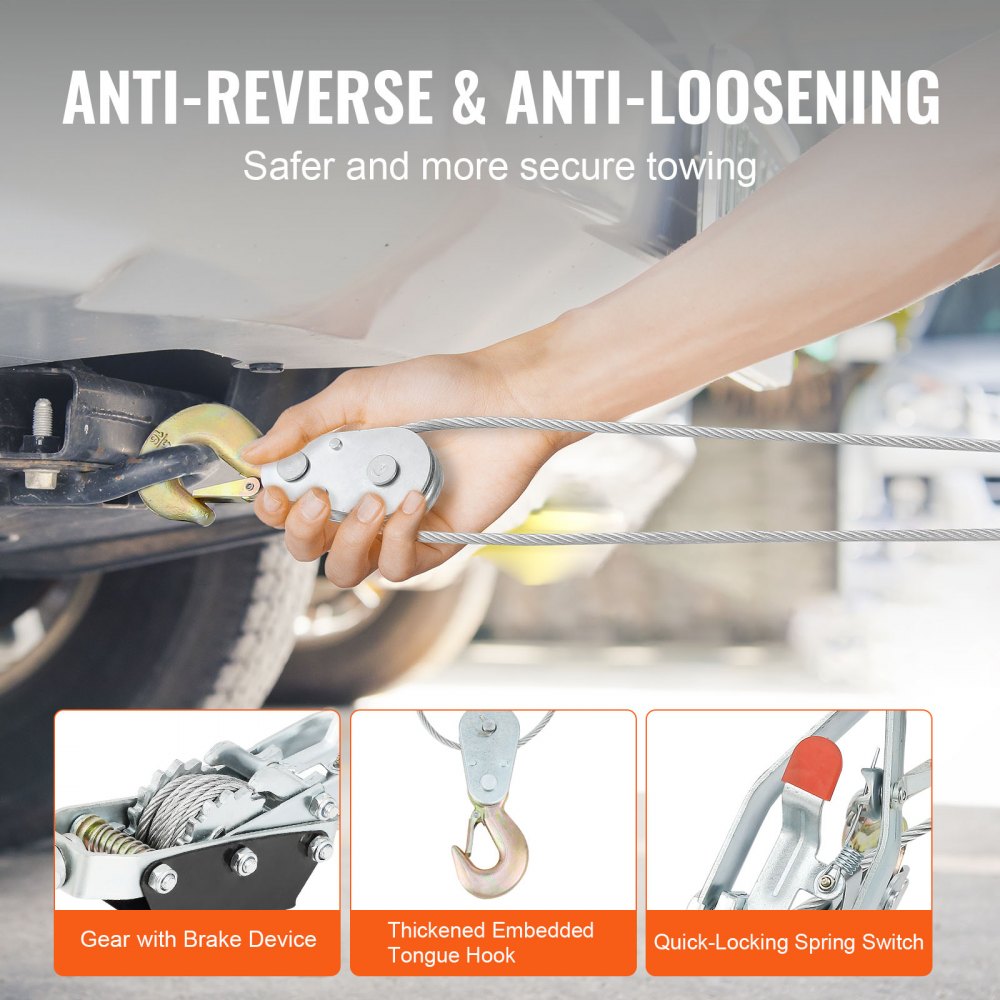 Serieuze trekkracht nodig? Dan is de Power Puller van VEVOR precies wat u zoekt. Met zijn solide tandwielontwerp uit één stuk glijdt hij moeiteloos en zet hij alles vast wat u beweegt. Ideaal voor voertuigredding, materiaaltransport, het verwijderen van boomstronken of het verplaatsen van meubels - wij zorgen voor uw dringende behoeften!
