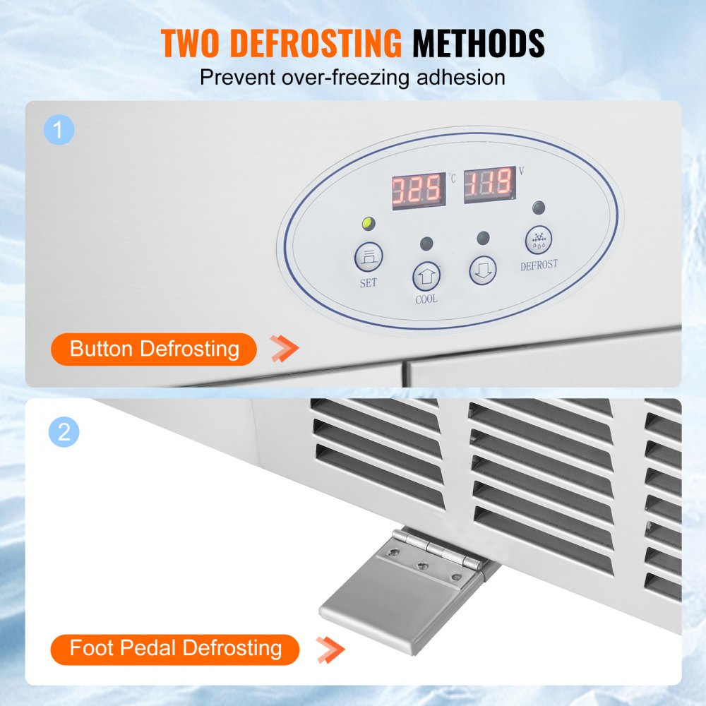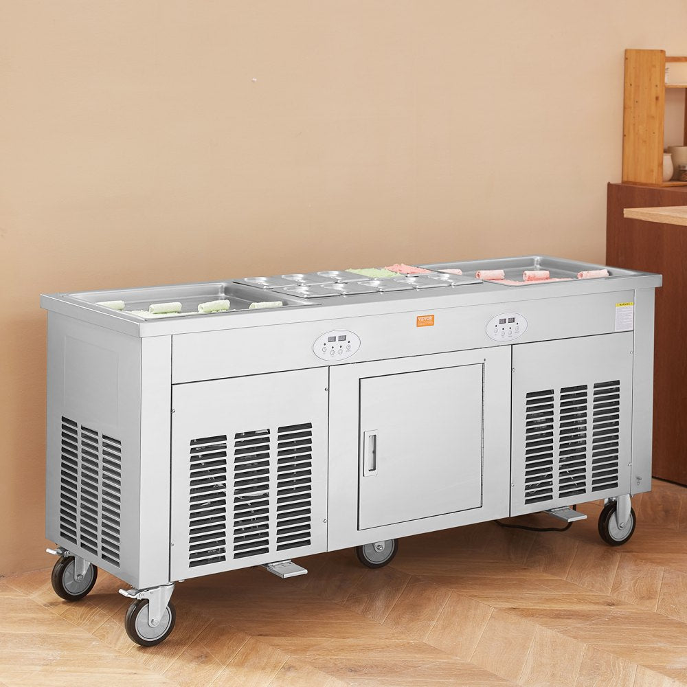 Onze ijsmachine is uitgerust met een geïntegreerd U-vormig koelsysteem gemaakt van koperen buizen, waardoor dode hoeken worden vermeden en de koelprestaties aanzienlijk worden verbeterd. Twee grote vierkante werktafels zorgen voor een groot werkoppervlak en voorkomen productmorsen.