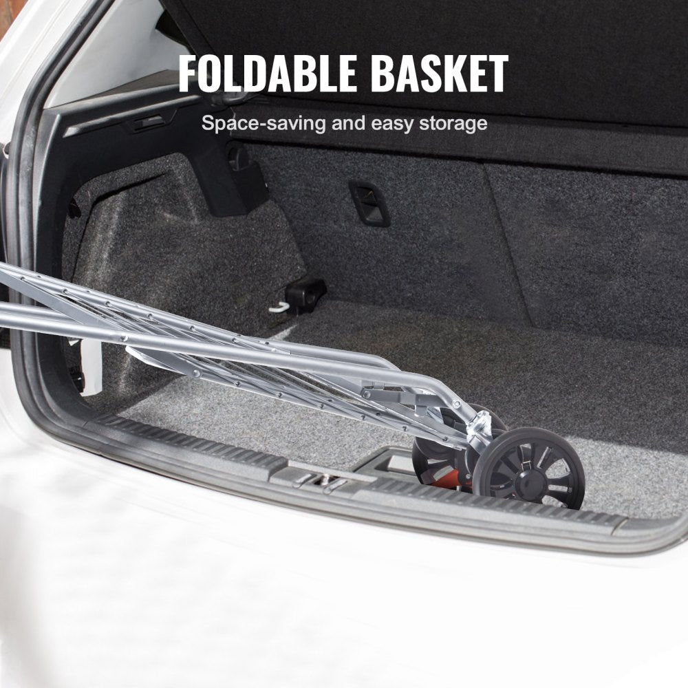 VEVOR opvouwbare winkelwagen met wielen, gemakkelijk te verplaatsen, opvouwbaar, duurzaam, boodschappen erin.