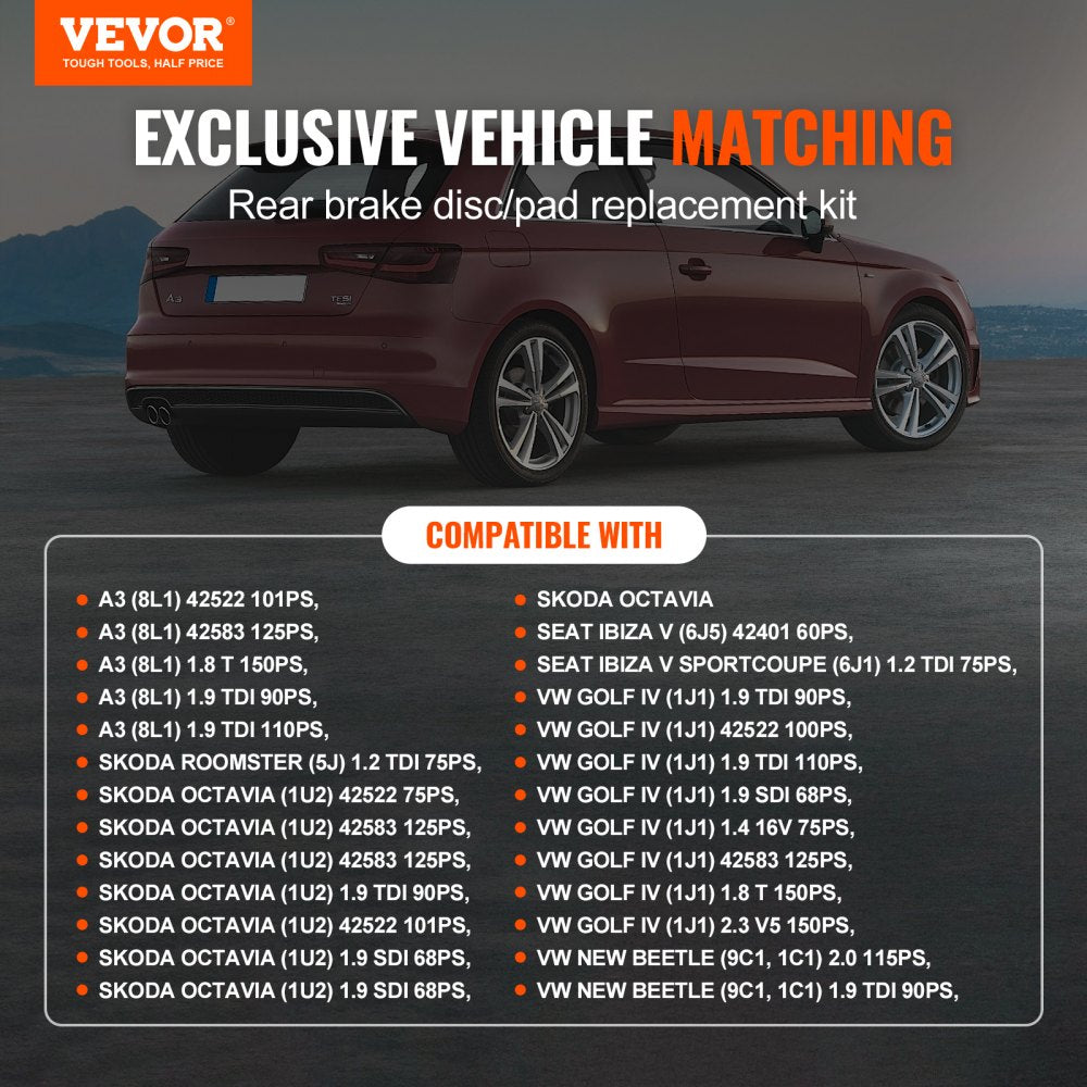 VEVOR remset achteras remschijven remblokken vervangingsset 232mm