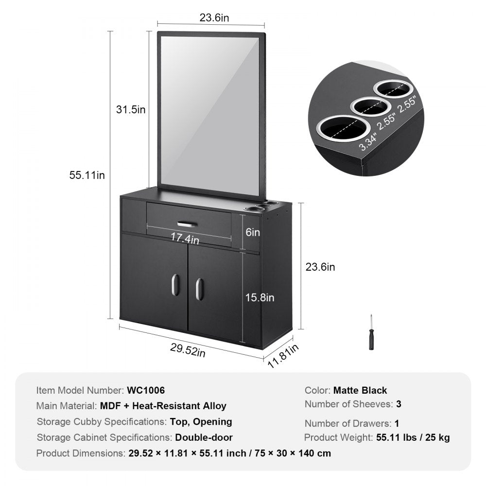 Dankzij de spiegel kunt u details duidelijk zien, terwijl de lade en de kast met dubbele deur voldoende opbergruimte bieden, waardoor uw werkruimte netjes en georganiseerd blijft!