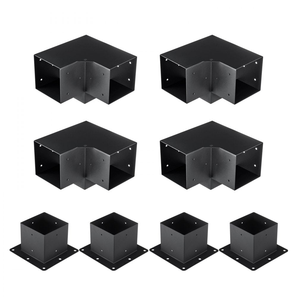 Deze beugels zijn gemaakt van 2 mm dikke koolstofstalen platen en zijn gecoat om corrosie en roest te weerstaan. De 90° laarsstructuur voorkomt breuk en vervorming. Verbeterd ontwerp met volledige dekking beschermt de bovenkant van de kolommen tegen regenwater.