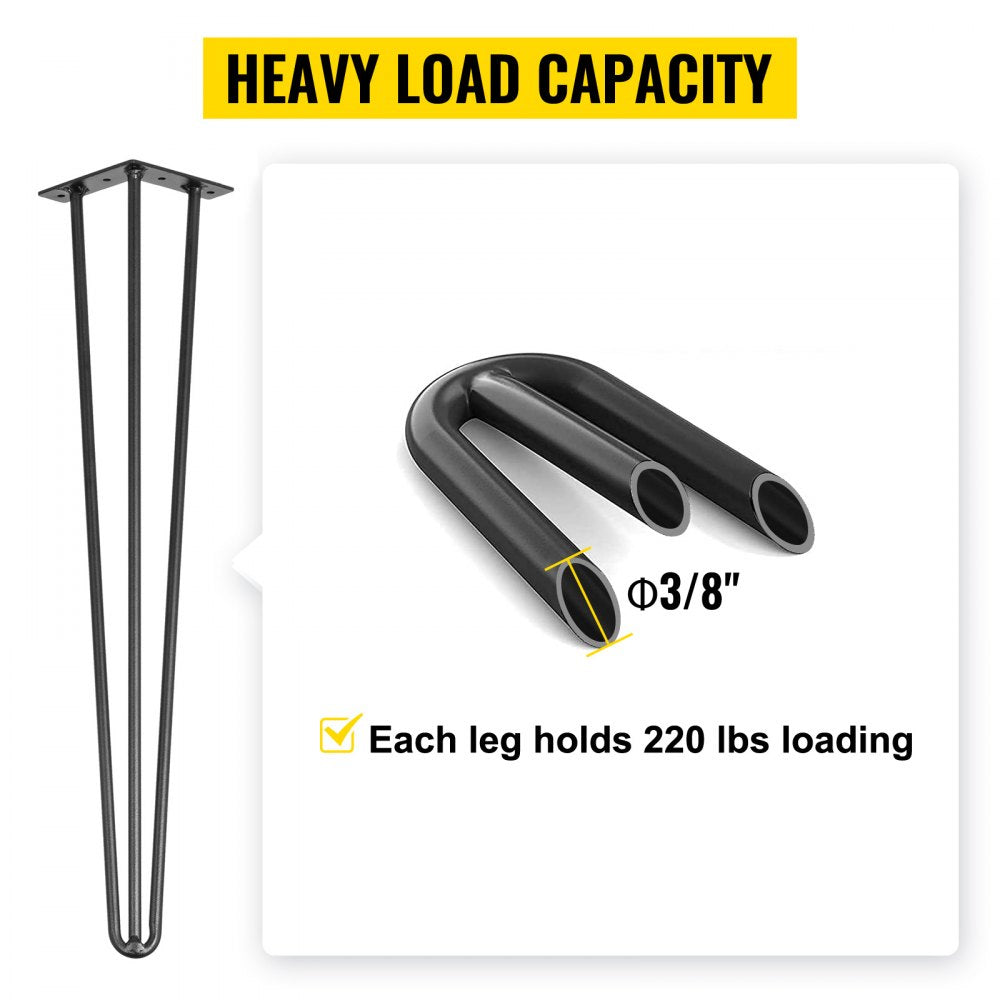 Elk van de haarspeld-bureaupoten kan een belasting van maximaal 220 lbs / 100 kg dragen, wat een zeer robuuste constructie van de meubeltafel vormt.
