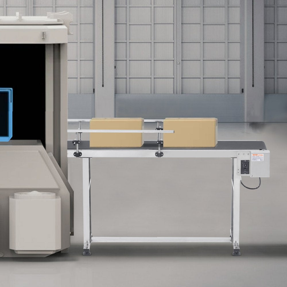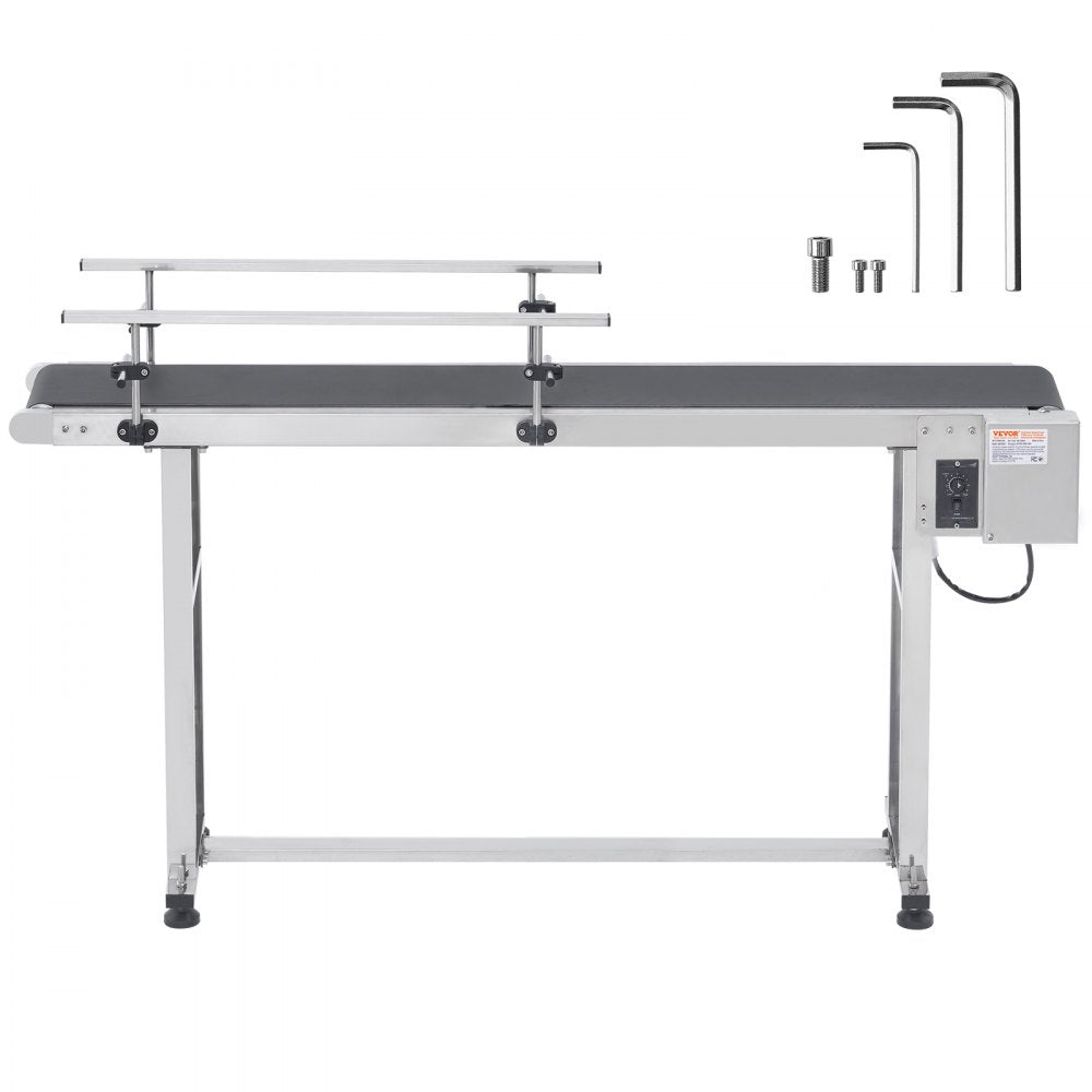 VEVOR transportband 1498,6 x 198,1 mm transporttafel Robuuste roestvrijstalen gemotoriseerde transportband voor inkjetcoderingstoepassingen Aangedreven PVC-band Verstelbare snelheid (dubbele leuning)