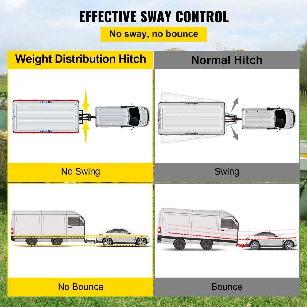 De gewichtsverdelingskoppeling van VEVOR is een eenvoudige maar geavanceerde verbindingskoppeling die is ontworpen met een wetenschappelijk gewichtsverdelingsmechanisme. Geen terugloop- of draaibeperkingen. Het is gemakkelijk om te stoppen met slingeren, zelfs bij slechte wegomstandigheden zoals ijs.