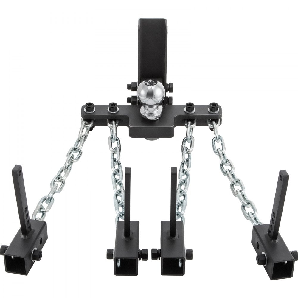De standaard 2-5/16 inch koppelingskogel- en slingerbedieningskettingen worden aangedraaid op de verstelbare kogelgemonteerde trekhaakontvanger. U kunt de installatiehoogte aanpassen aan uw behoeften. Het hoogteverstelbereik is 8 inch.