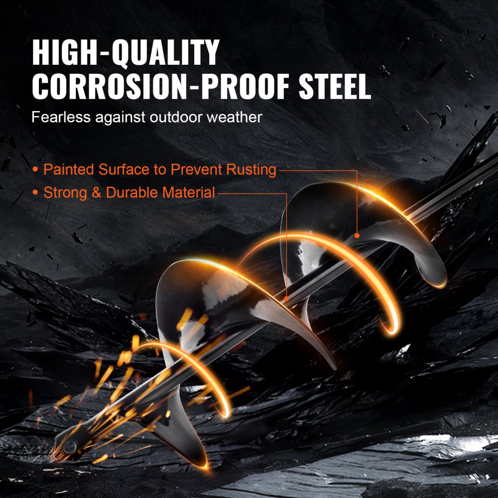 VEVOR tuinvijzel φ47x400m en φ97x400mm grondboor voor elektrische boor PCM stalen paalvijzel geschikt voor 3/8"(9,53mm) zeskantboormachine draaivijzel aardegatboor voor het planten en mengen van zaden