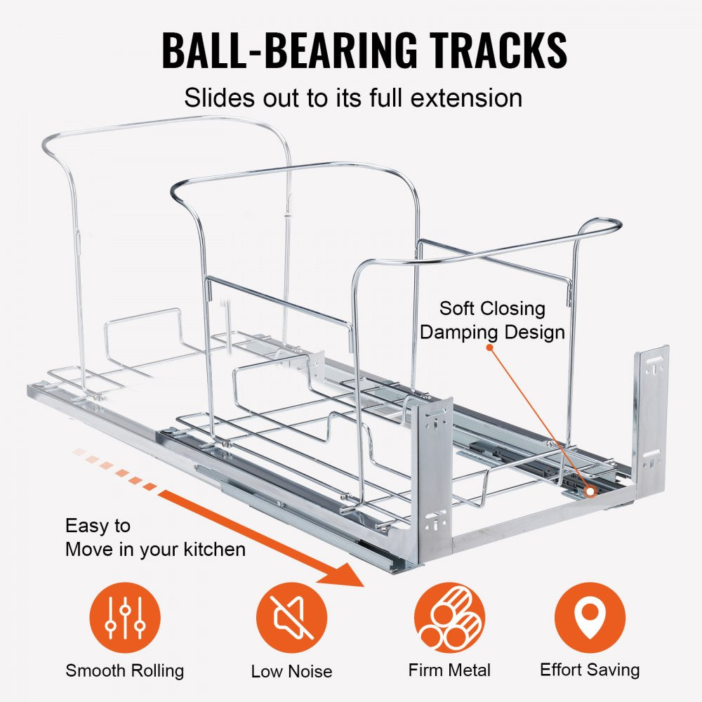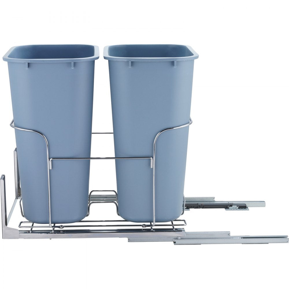 VEVOR Uitschuifbare afvalbak, 35L x 2 dubbele bakken, ondergemonteerde keukenafvalbak met schuif- en deurmontageset, 50kg laadvermogen, uitschuifbare prullenbak voor keukenkast, gootsteen, enz.
