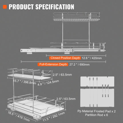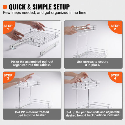 VEVOR Uittrekbare spoelkastplank, keukenkast, kruidenrek, dubbele mand, 124 x 399 x 63 mm + 292 x 419 x 63 mm, spoelplank, uittrekbare kastorganizer, onderkastplank, spoelkast