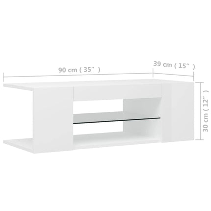 Derins TV Schrank mit LED-Leuchten Lowboard Fernsehschrank Fernsehtisch Sideboard HiFi-Schrank TV Möbel Tisch Board Hochglanz-Weiß 90x39x30cm