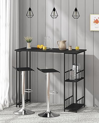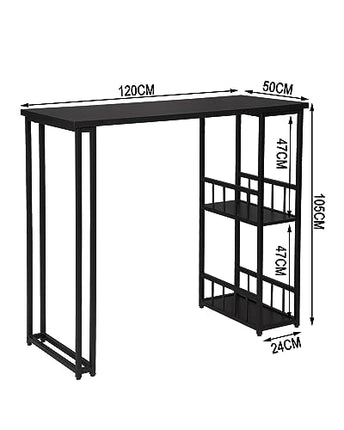 Derins Bartisch BT25sz Stehtisch Bistrotisch Bartheke Tresentisch, mit 2 Ablagefläche, Metallgestell, MDF, 120x50x105cm(BxTxH), Schwarz