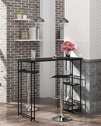 • BEQUEME AUFBEWAHRUNG: Neben einer großen Tischplatte, die für Teller, Kaffee und Laptops genutzt werden kann, verfügt der Stehtisch auch über 2 Ablagen zur Aufbewahrung von Wein, Zutaten, Küchenutensilien oder Büchern, damit Sie diese leicht handhaben und ordentlich geordnet aufbewahren können. Die vertikale Aufbewahrung kann Ihnen helfen, den Platz optimal zu nutzen, und die Metallgeländer auf beiden Seiten schützen auch vor dem Herunterfallen von Gegenständen.