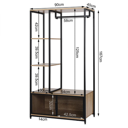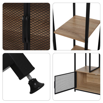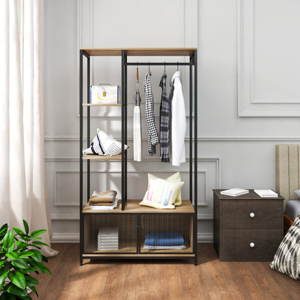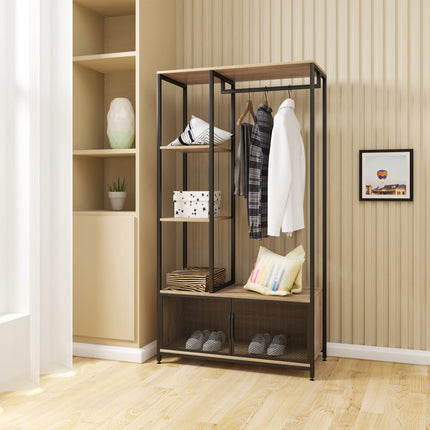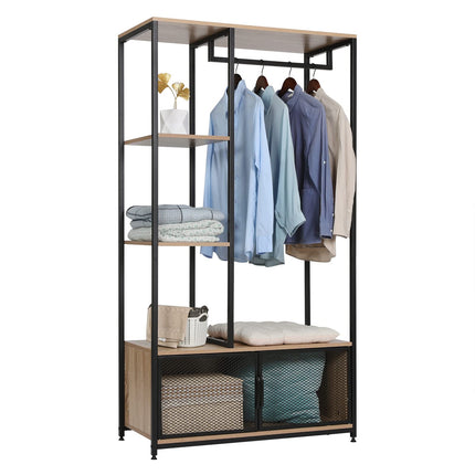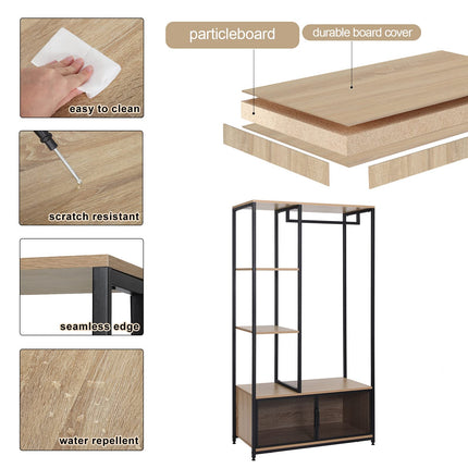 Derins Kleiderständer mit Lagerschrank Kleiderschrank Offener aus Holz und Metall, Garderobenständer für Schlafzimmer, Hell Eiche SR0131hei