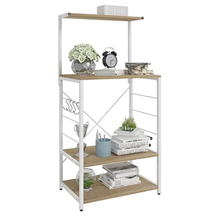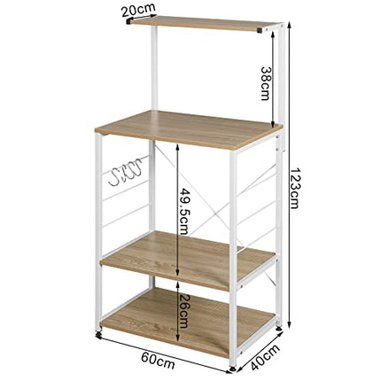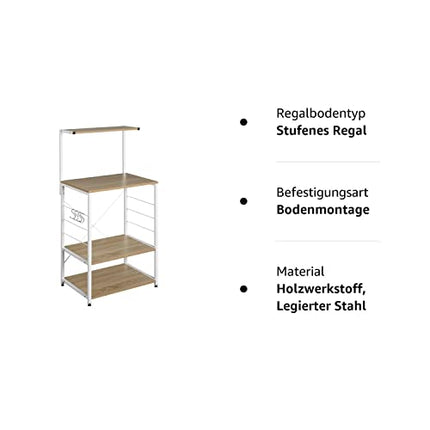 Derins Küchenregal Standregal Mikrowellenhalter Bäcker Regal Haushaltsregal, Helle Eiche+Weiß RGB9285whe