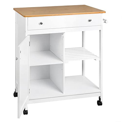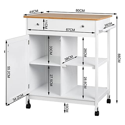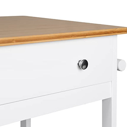 Derins Servierwagen Küchenwagen Küchentrolley aus Bambus Rollenwagen mit Arbeitsplatte mit Schublade Weiß 75 x 89 x 44 cm RW042ws